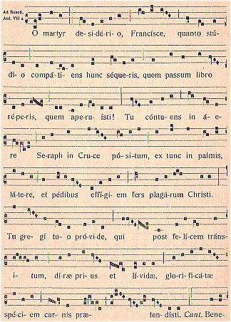 Vili contectus tegmine sancto calescens flamine inter caeli charismata Christi recepit stigmata.